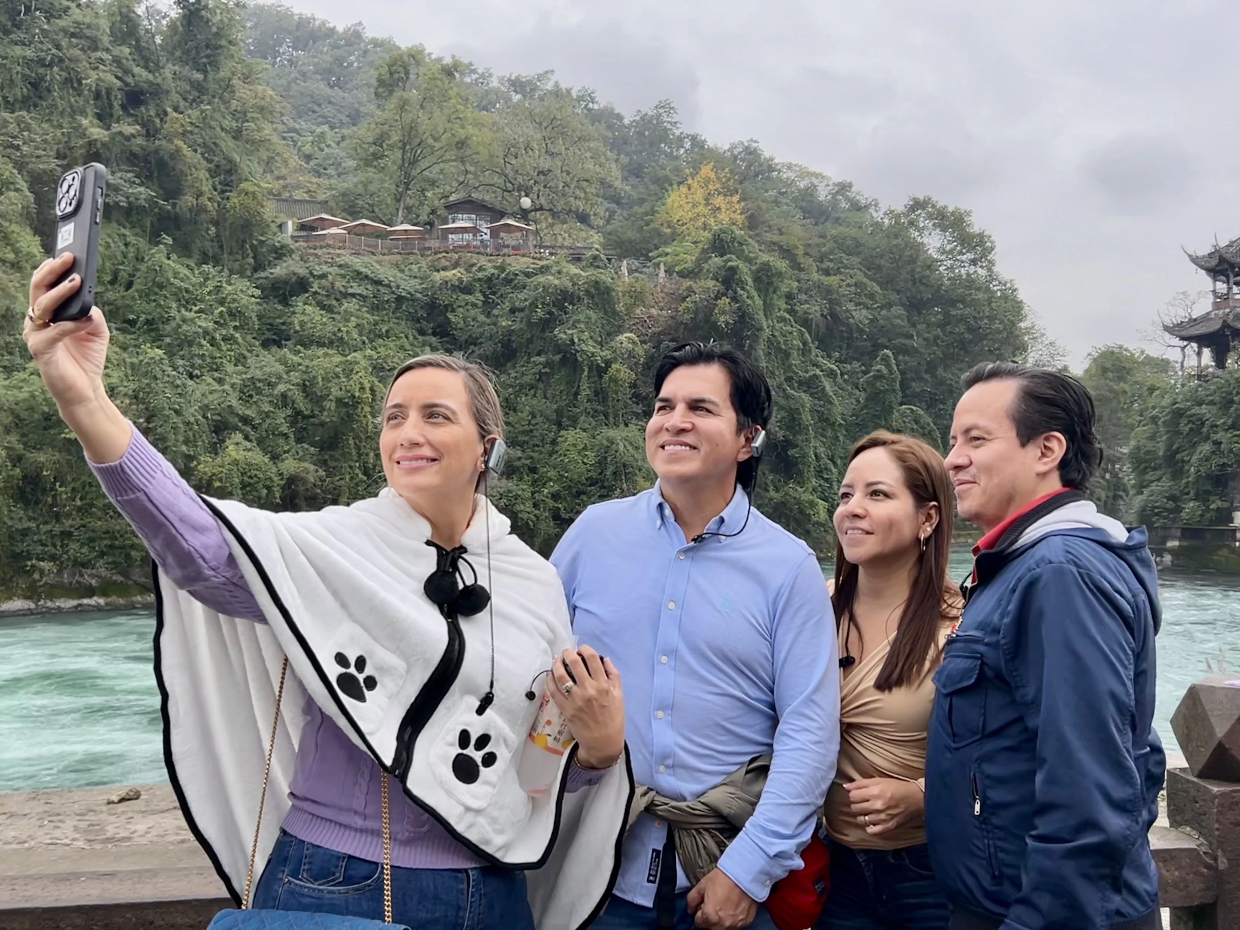 登上秦堰楼,壮丽的都江堰水利工程画卷展现在眼前。代表团成员们在此感受千年古堰的雄浑气魄,纷纷拍照留念。当听到水利工程已有2280年历史时,不禁赞叹古人的非凡智慧。随后,代表团一行先后来到安澜索桥、鱼嘴、飞沙堰、宝瓶口等地,听取都江堰水利工程的悠久历史、卓越水利功能介绍,了解“堰工”故事、都江堰生态保护成就,感受着大自然的鬼斧神工和人类的智慧结晶,以及历史与自然交融的独特魅力。大家频频拿起手机,记录都江堰的美丽风景、深厚文化和独特魅力。厄瓜多尔圣多明各德洛斯查奇拉斯省省长约翰那·努涅斯·加西亚说:“都江堰真的很美!古人对都江堰水利工程精心设计和如今大家对它的保护、管理,确保了水利工程至今能持续运行,既造福了人民,也保障了灌溉,是值得效仿的榜样,我们将会把治水理念带回厄瓜多尔。”