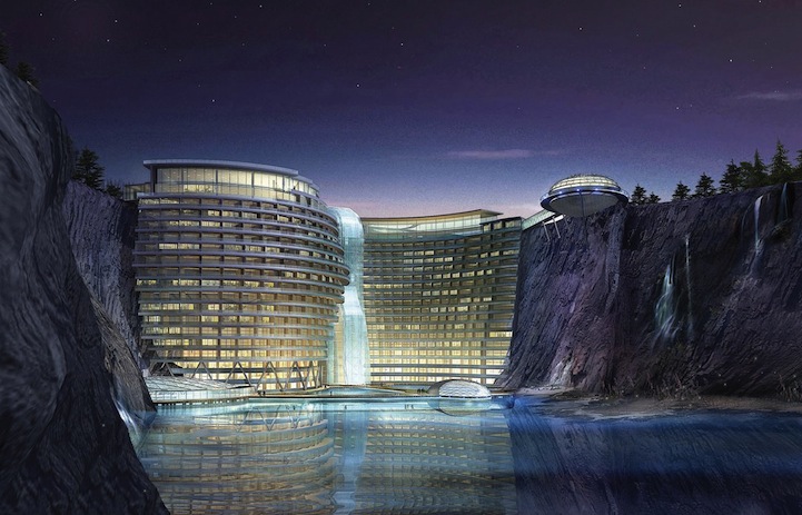 洲际世茂仙境酒店就位于上海旁边,现在还没有完工。不过已经快完工了,所以我们也将它囊括进来。建筑师Atkins在采石场的一侧设计了这个现代派的奢华酒店。这个有着370间房间的酒店有地下2层,用于餐厅和客房。这里将有一个人造瀑布,游客可以在上面进行水上运动。酒店2017年底开业,每晚200美元起。
