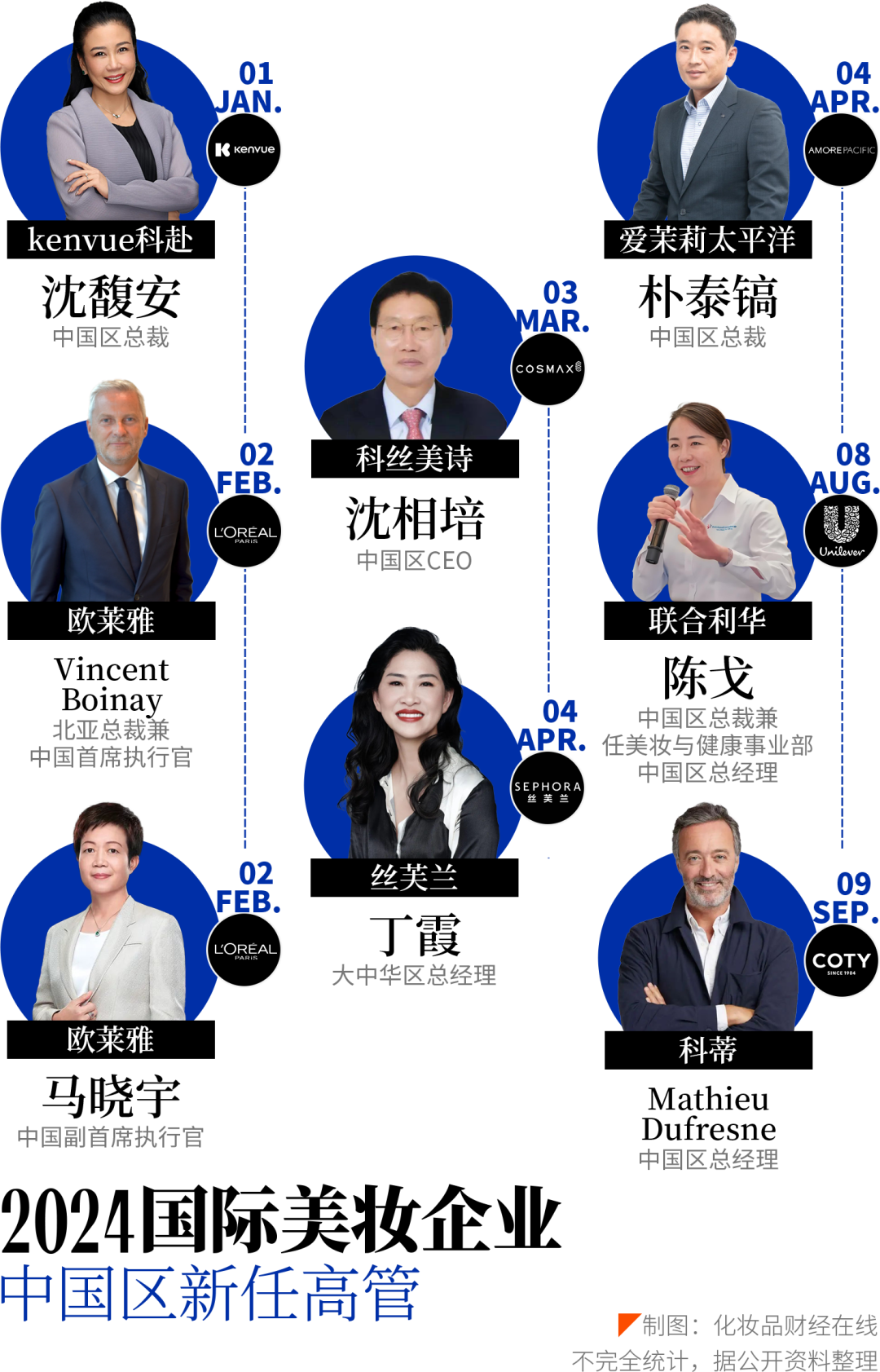 可以看到,近年来,国际美妆企业正在通过向内改革、更换中国区高管以及聚焦中国消费者需求等方式来加速集团产品中国化运营。据CBO不完全统计,今年以来,至少8位美妆集团中国区高管变更。