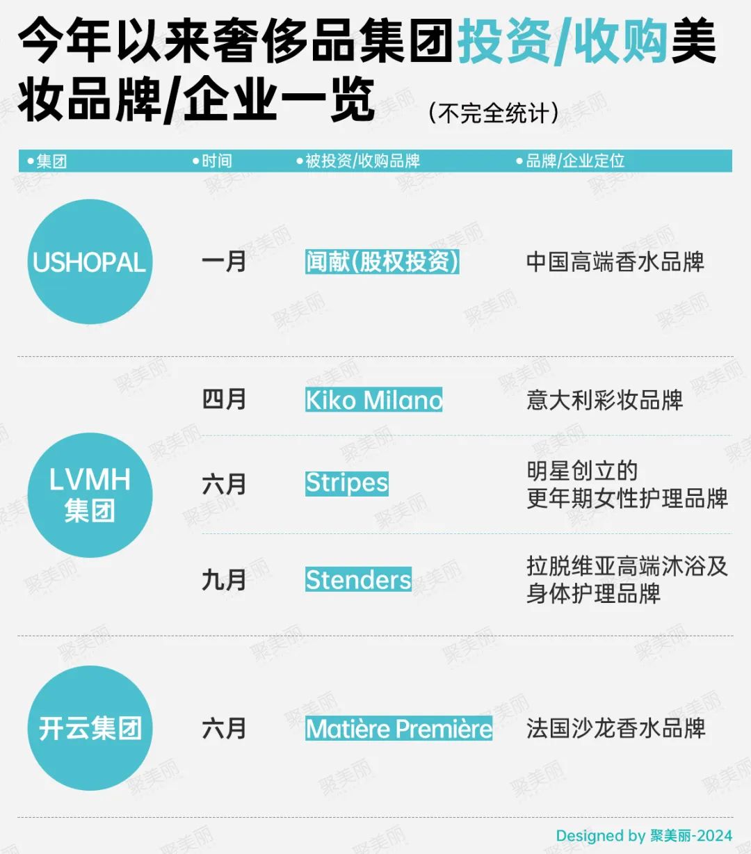 在收购/投资加注美妆赛道上,各奢侈品集团也动作频频,如LVMH集团在洗护赛道、平价彩妆等方向进行了布局。