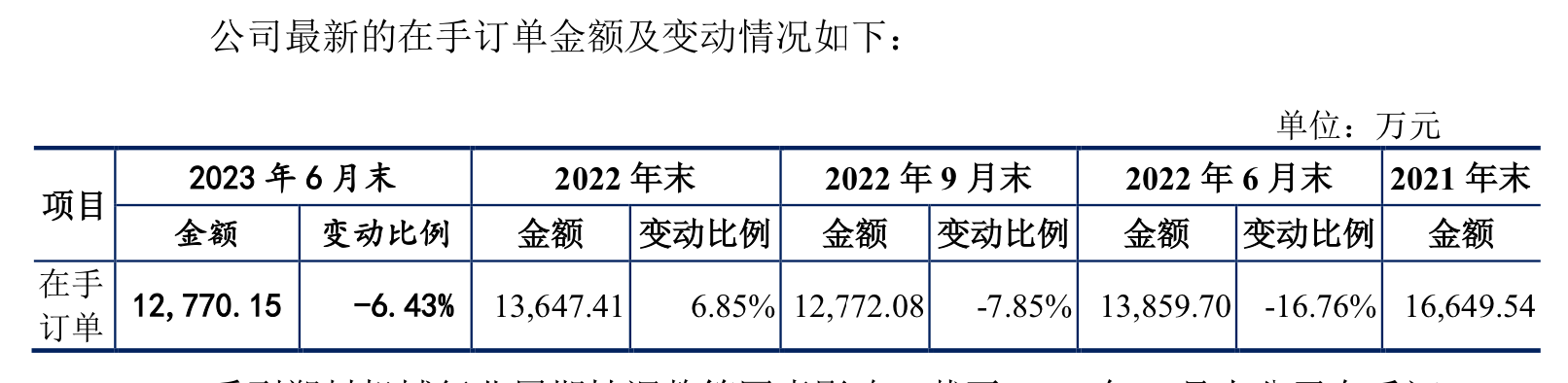 至于后续获取订单的能力,浙江华业透露,截至2023年6月末在手订单为12770.15万元,同比下降6.43%。
