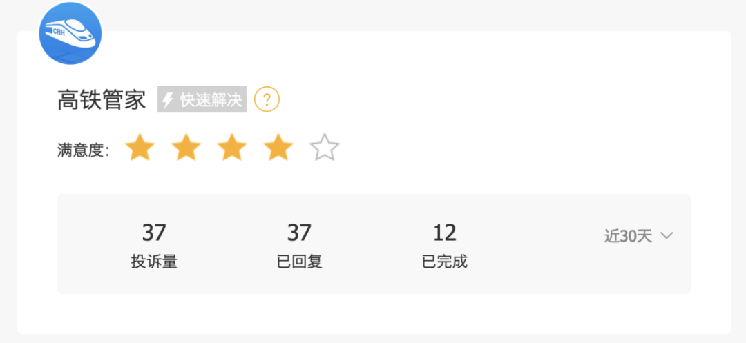 高铁管家的累计投诉量为5530条,其中近30天内的投诉量为37条。