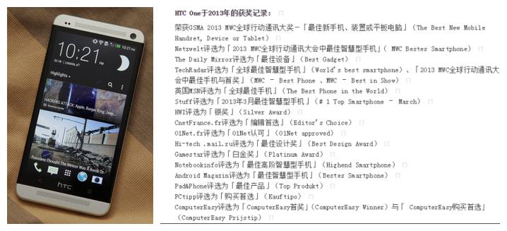 ▲HTC one 的获奖记录(部分)