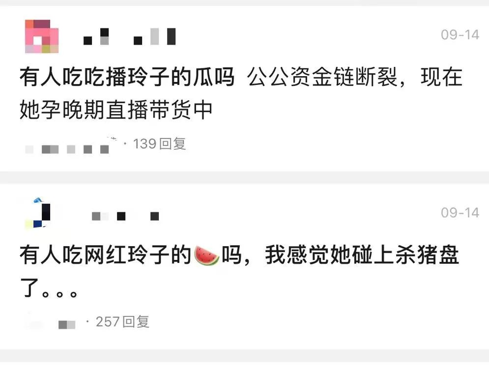 剧情推进到这里,玲子的阔太人设已经相当丰满。让人没想到的是,故事又急转直下。孕晚期的玲子突然做起了直播带货,看上去还相当憔悴。于是,群众又开始分析“网红惨遭杀猪盘”“假千金遇上假豪门”。