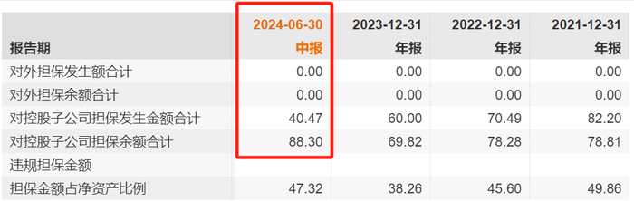 除自身的债务外,领益智造还大量对子公司债务进行担保。Wind数据显示,截至2024年6月30日,领益智造对控股子公司担保余额合计为88.30亿元。这也意味着,算上对外担保金额,领益智造实际债务压力更大。