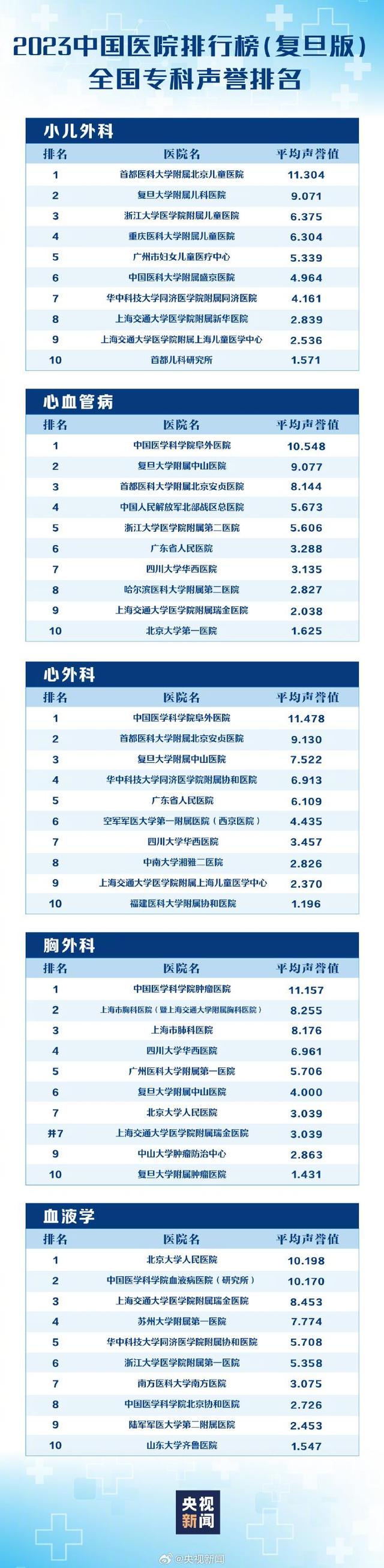 11月16日,复旦版《2023年度中国医院综合排行榜》和复旦版《2023年度中国医院专科声誉排行榜》在上海市发布。全国共有100家医院进入《2023年度中国医院排行榜》,45个专科(前10名)榜上有名。