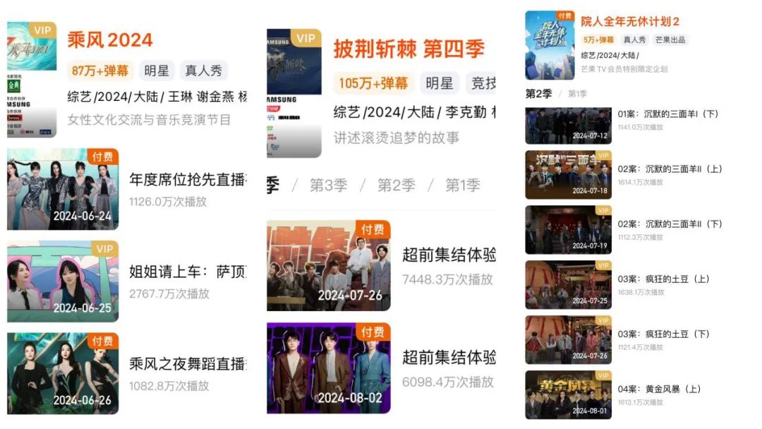 面对这一场毫不掩饰的「割韭菜」,尽管不情愿、愤怒的情绪在付费用户中比比皆是,但掏腰包的人却也不在少数。目前,《披荆斩棘4》超前集结体验篇上下两集的播放量已突破1.3亿,《乘风2024》「年度席位抢先直播夜」「乘风之夜舞蹈直播秀」以及《院人全年无休计划2》所有单期的播放量均已破千万。