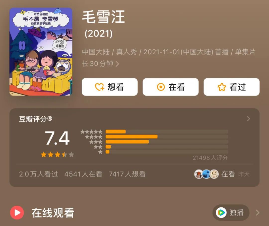 而且,已经陪着观众走过三个春夏秋冬的《毛雪汪》,一直很争气。