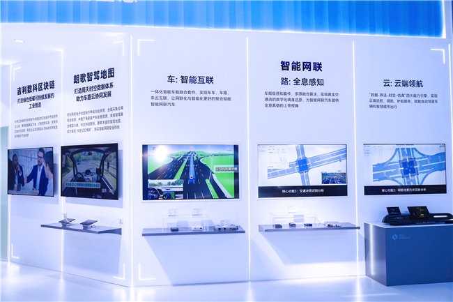 除无人驾驶智能导览车以外,吉利创新中心也向用户展示了其最新的智能网联方案产品、创新技术及突破性成果,比如目前已经围绕路云数据服务自动驾驶取得多项关键技术突破,包括数字信号上车,交通事故场景库、路侧车规级感知套件等方案产品。