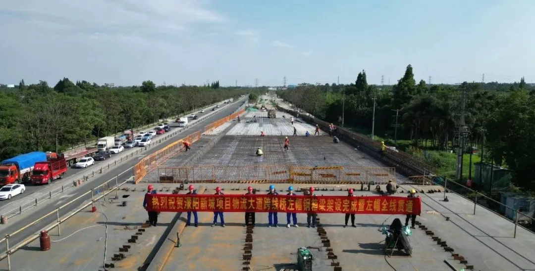 物流大道跨线桥是天府大道北延线(濛阳段)北段项目的关键性节点之一,跨线桥立交间距3千米,在提升城市门户形象、满足周边居民出行需求的同时,解决了货流转换问题,减少了交通拥堵。整个项目采用分幅施工,剩余的白土河中桥施工工程预计将于年底完工。