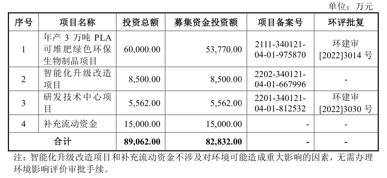 PLA原材料的募投