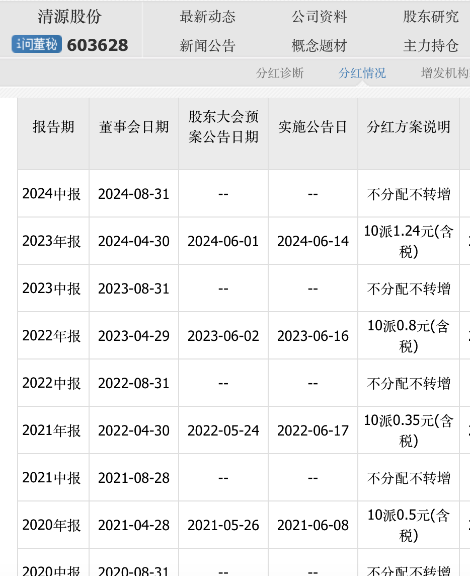 资料显示,清源股份上市日期为2017年1月12日,主要产品和业务包括光伏支架、光伏电力电子产品和光伏电站开发及建设等,根据国家统计局《国民经济行业分类》(GB/T4754-2017),公司所属行业为“C3825光伏设备及元器件制造”。2024年前三季度营业收入13.19亿元,净利润9785.07万元。近年来,清源股份有分红记录。