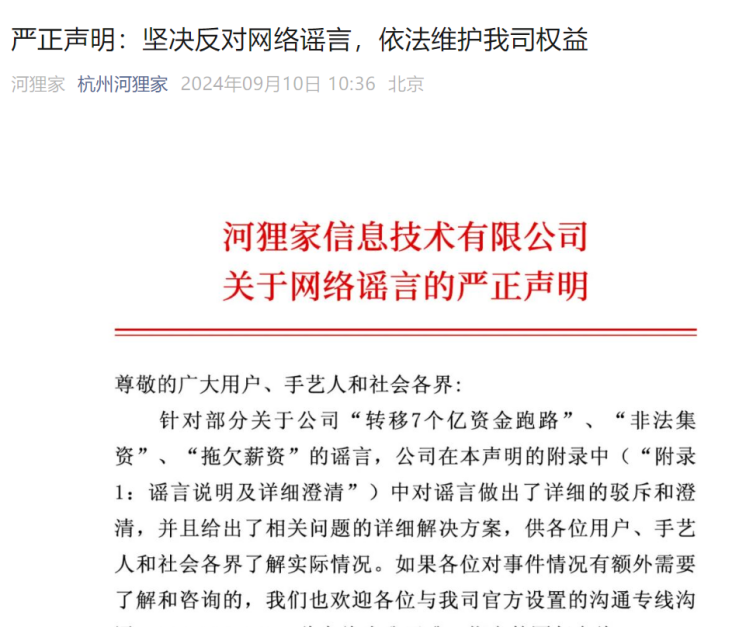 河狸家也通过官方公众号做出回应,否认了“拖欠薪资”“非法集资”的说法,称网上出现了针对我司的恶意谣言攻击,公司已经于9月8日向杭州余杭区分局五常派出所报警。