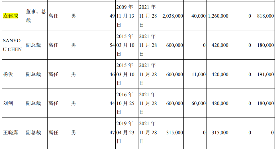 随后在2016年~2018年,袁建成的年薪开始波动,分别为209.98万元、211.62万元、196万元。2019年8月袁建成离任,在离任当年(2019年)的薪酬显示为66.7万元。