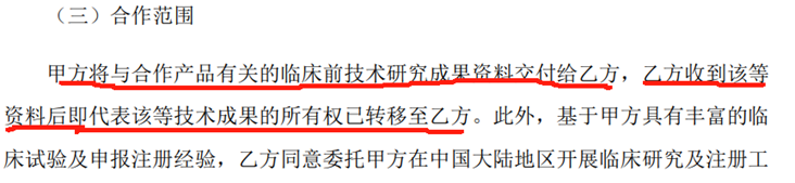 显然,这对于改善翰宇药业未来业绩是一则利好,但此前的一则关于该药品的合作协议却显示,翰宇药业要将该药品的部分技术成果转让,其中关于“转让”的说法引发关注,其技术成果的“所有权”到底属于谁出现了矛盾。
