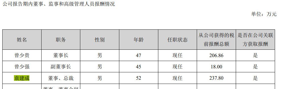 这期间,曾少贵三兄弟分别任董事长、副董事长,袁建成任董事、总裁。