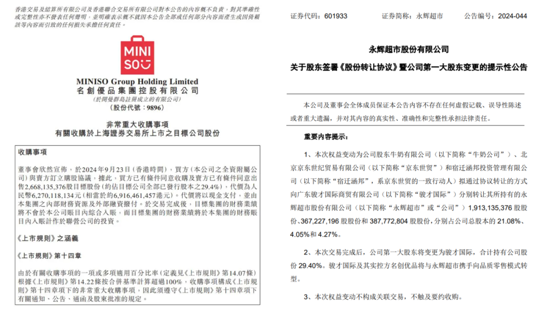 9月底,62.7亿元、29.4%股权、抄底、接盘……名创优品成为了永辉超市的第一大股东。“10元店”起家的名创优品入股商超界的龙头永辉超市,堪称一出“蛇吞象”,这也是中国零售界近七年最大的投资案例。