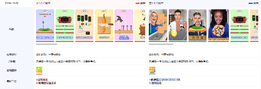 直到进入10月,该游戏在版本更新的时候,陆续在游戏中加入了音调挑战、模仿动物叫声、尖叫鸡等TikTok热门趋势挑战,游戏图标也对应地变成了挑战相关内容。