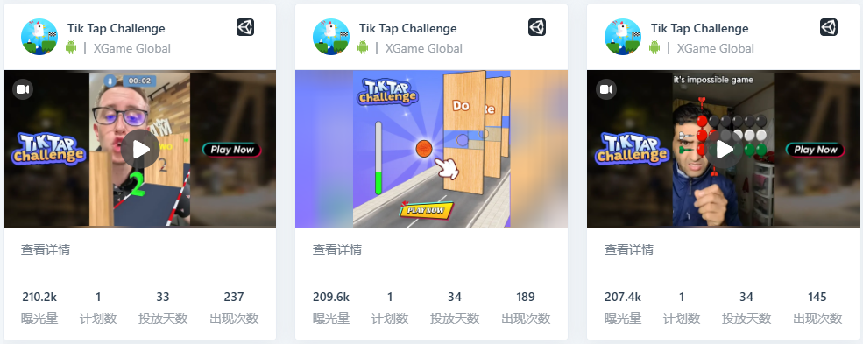 TikTok上面大火的视频内容,还能反过来成为它们的买量素材,帮助游戏快速抓住目标用户。据DataEye,两款游戏产出了大量曝光量超20万的爆款素材,可谓得来全不费工夫。