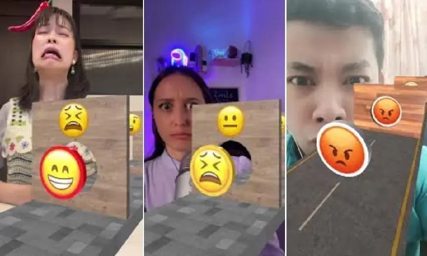当然并不是所有的特效小游戏都需要声音的加入,比如在表情挑战里面,玩家只要控制面部表情,与对应的emoji一致,即可通过。