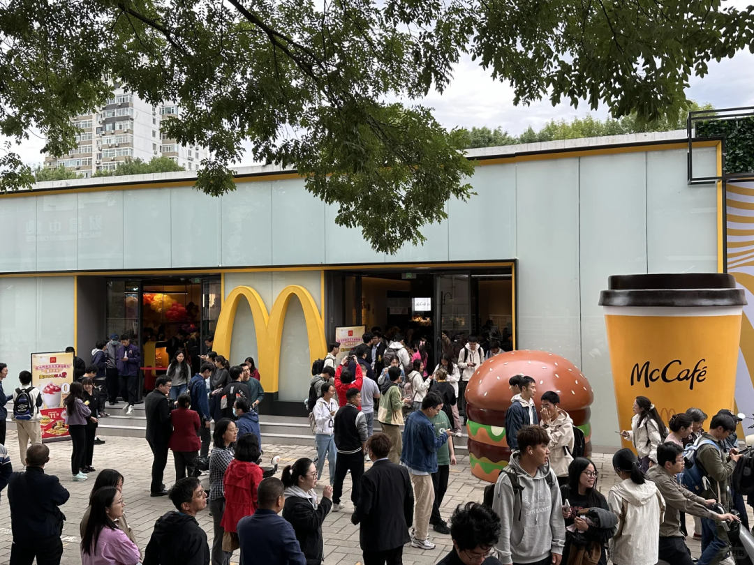 清华大学麦当劳开业首日,截止中午已排八百多号。图 / 小红书博主@言烁睡不着