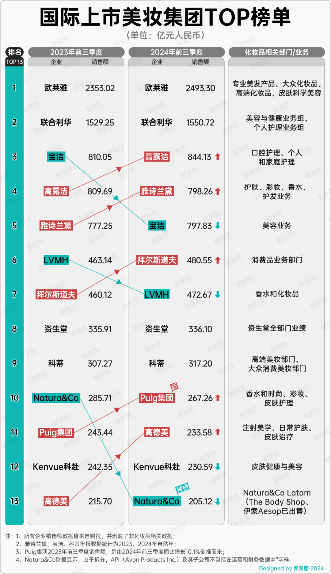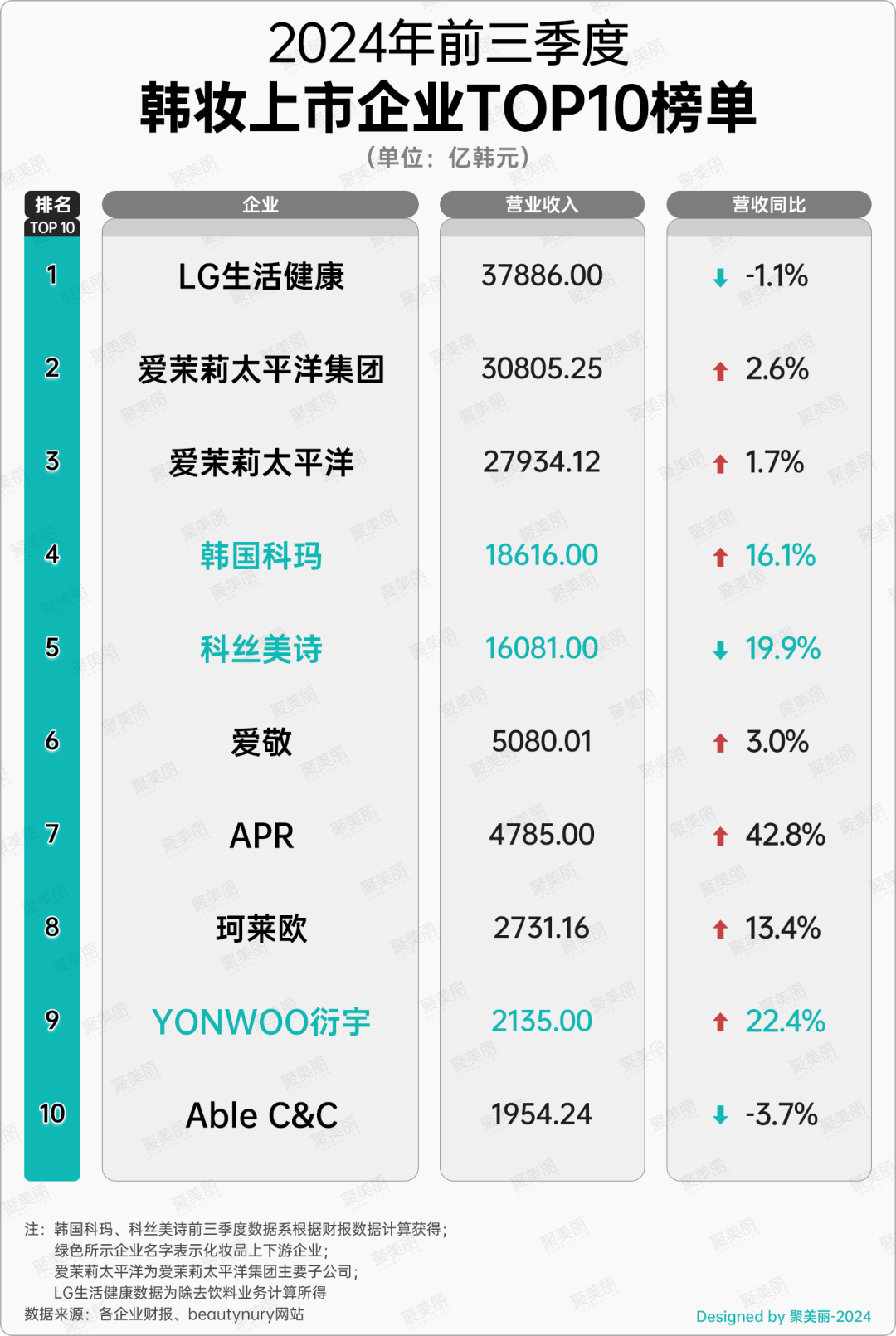 另一方面,从全球市场来看,聚美丽此前对全球各大美妆集团公布的三季报情况进行了梳理,榜单中同样未见韩妆企业的身影。