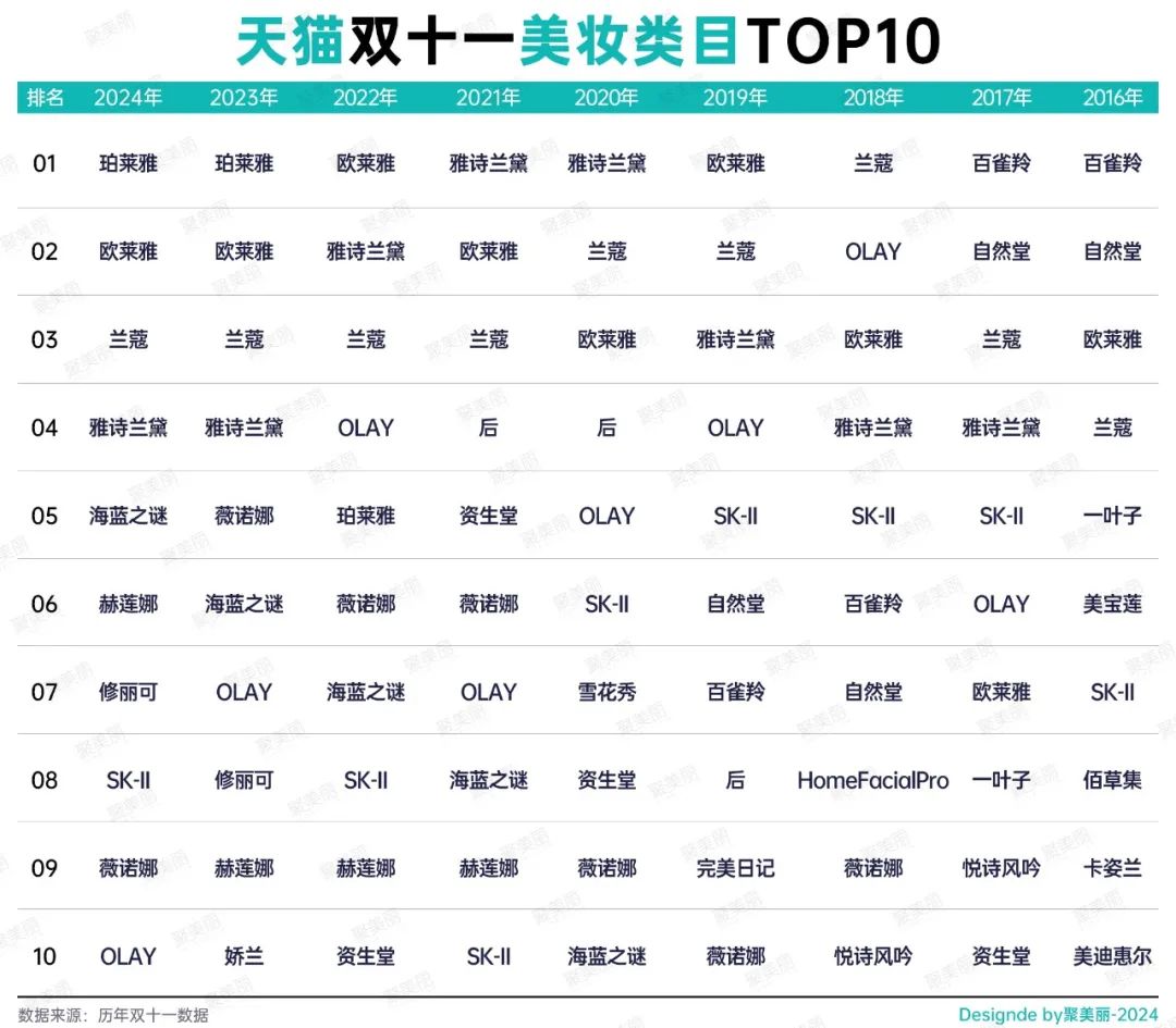 每年双11美妆榜单和数据中,都能窥见一些行业的竞争格局与变化。