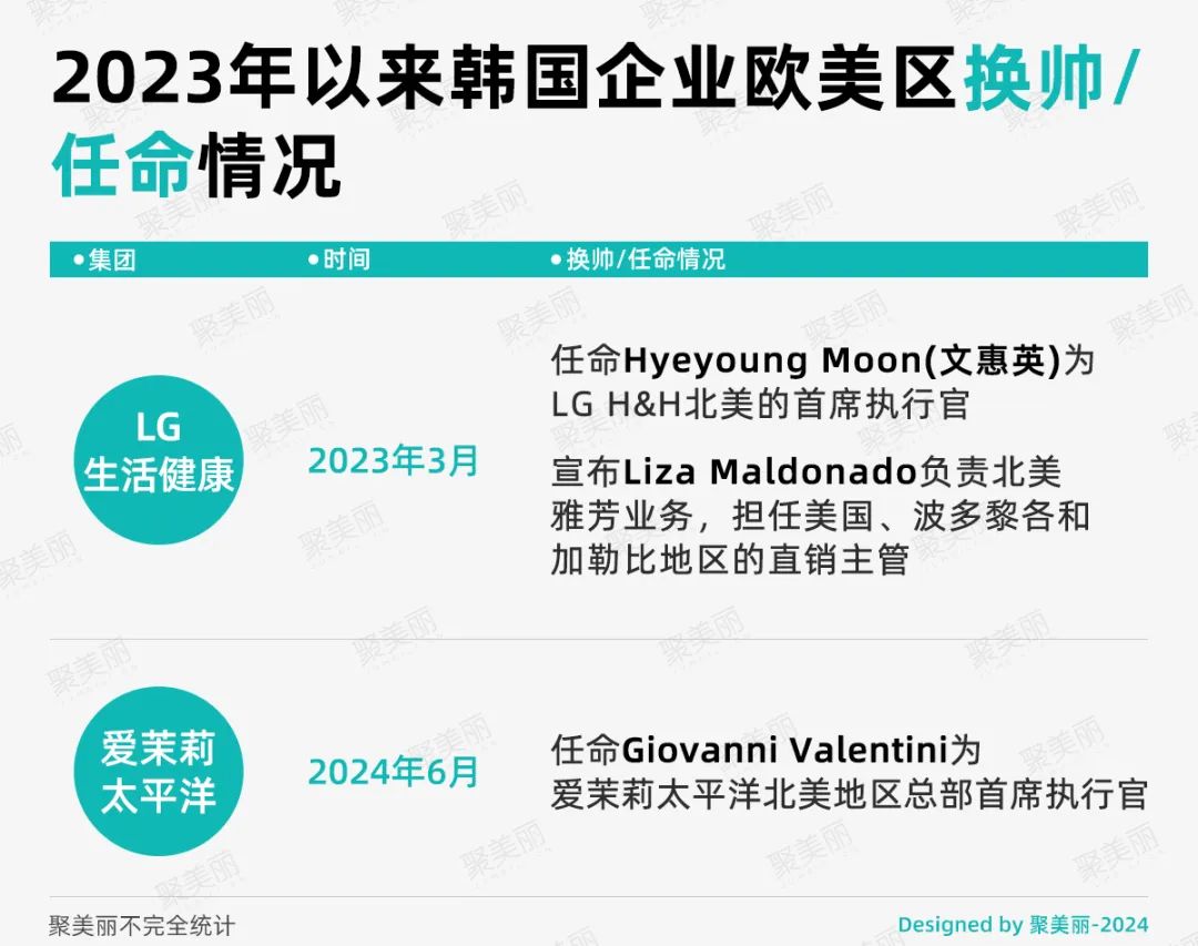 此外,作为近年来韩妆重要的战略市场,欧美区韩妆企业换帅动作也是频频。