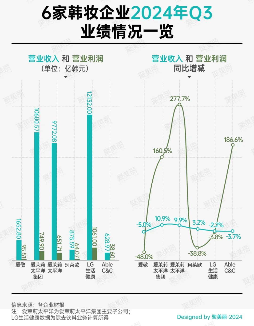 基于上述种种,爱茉莉太平洋集团及其主要子公司爱茉莉太平洋成了上述六家企业中,Q3唯二营利双增的韩妆企业,且该季度营业利润同比均三位数增长,分别为160.5%、277.7%。