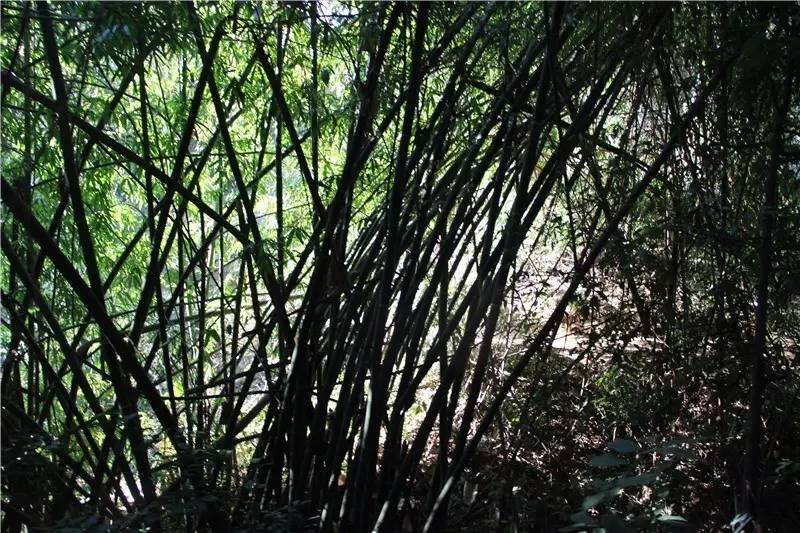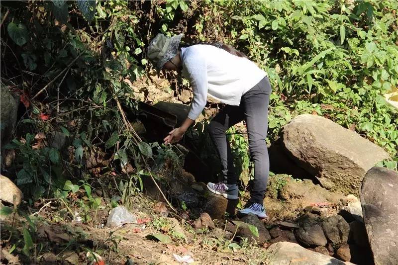 通向茶园的路,会经过一片生长旺盛的大竹林。竹林旁有清澈的山泉水从高处流下,哈尼族人用竹筒引流,便于来往行人取用。与竹林相伴的是一幢用木板搭建的哈尼族特色小亭子,供来往者暂且歇脚。