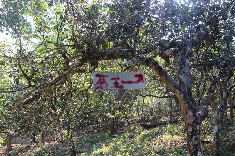 有趣的是,在路口的一棵茶树上挂着一块白色铁皮,上面用红色的漆写着“茶王”,乍看之下那棵茶树瘦高,没有铁丝网的保护,怎么看都不会是茶王树,倒好像是大王派来收路费的小妖精,我们纷纷开着那棵茶树的玩笑。