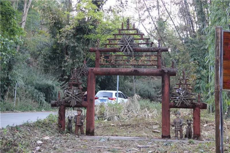近看哈尼族的寨门,外形像一座山,门的左右两边各有一人一狗的小雕像,人雕像手握钢叉和狗一起把守着村寨。过了正门,一路向上全是水泥路,干净整洁,南糯山的环境洁净,风景美如画。