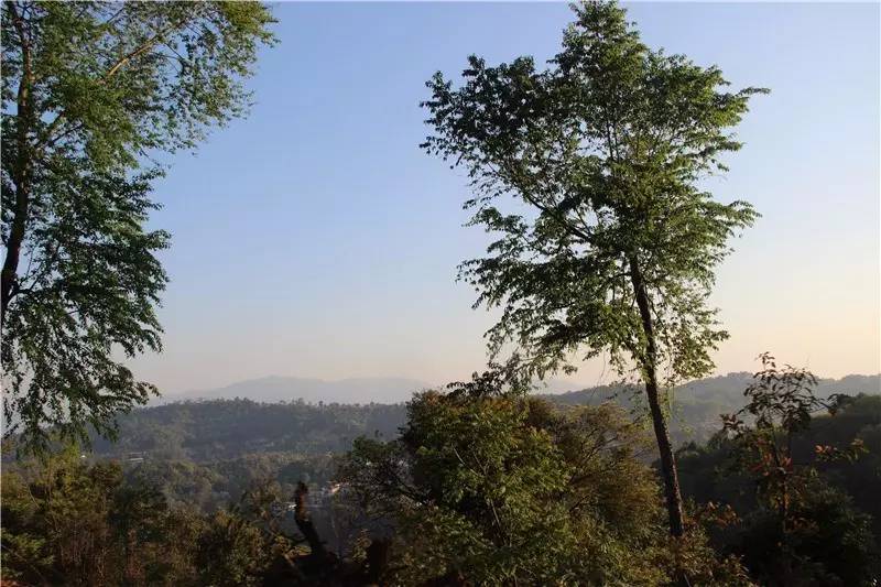 半坡寨与茶园接壤,从寨中到达茶园需要步行半个小时的泥土路。因为好几个月没有下雨,泥土路干燥易走。泥土路虽路面平坦,但一段下坡,下完坡直行一段,完了又继续上坡,如此反复,平坦的路面也只是假象。泥土路上落满了厚厚的枯树叶,踩上去咯吱咯吱响个不停。