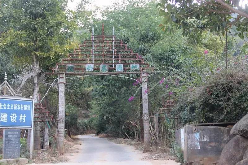 水泥路旁的树木笔直细高,一路上树高林密,路途经过第一个寨子——姑娘寨。寨子的房屋十分别致,有的房顶是蓝色的像琉璃的瓦顶;有的是黑灰色的石板瓦;一座座房屋在道路旁的树林下静默。