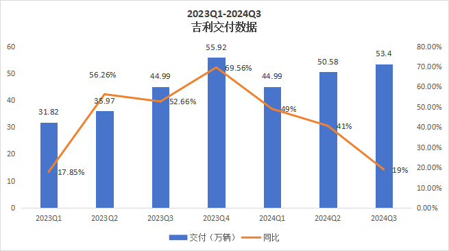 2024年前三季度,吉利汽车(0175.HK)整体盈利1676.84亿元人民币,毛利率持续回升至15.28%;并且在营销费用有效地控制下,营业利润达到了129.34亿元,是去年同期25.5亿元的5倍多。极氪(ZK.US)2024年第三季度营收为183.58亿元,同比增长31%,本季度的毛利率也达到了16%;今年前三季度,极氪总营收同比增长超50%至531亿元,已超2023全年业绩水平。