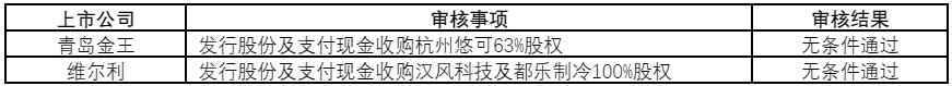 三,一周并购重组审核结果