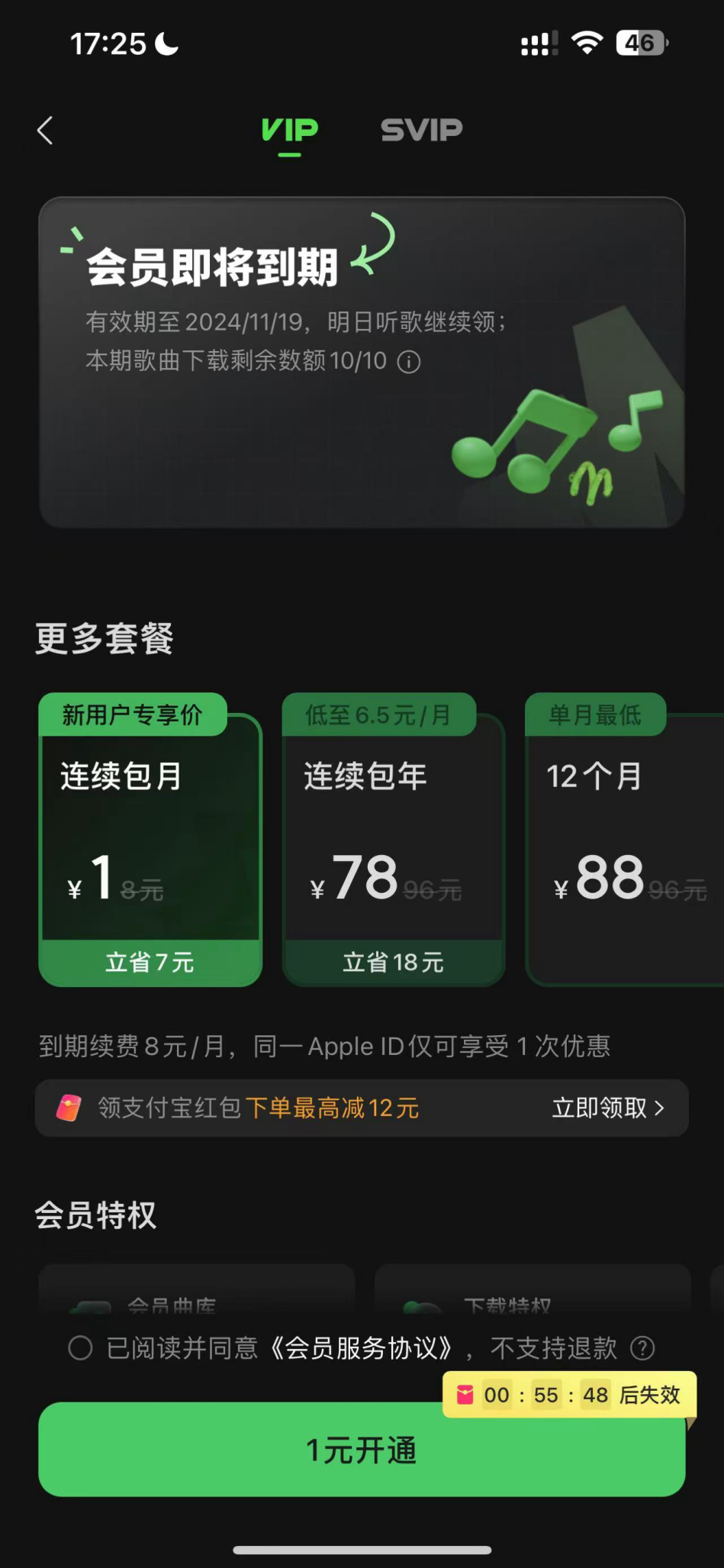 尤其是汽水音乐,自2022年6月上线至今不过两年多的时间,发展速度十分迅速,截至2024年3月6日,iOS已经斩获3000多万次下载,其优惠力度也是相当大,「新熵」发现汽水音乐为新用户提供“VIP限时天天送““1月连续包月”等福利。