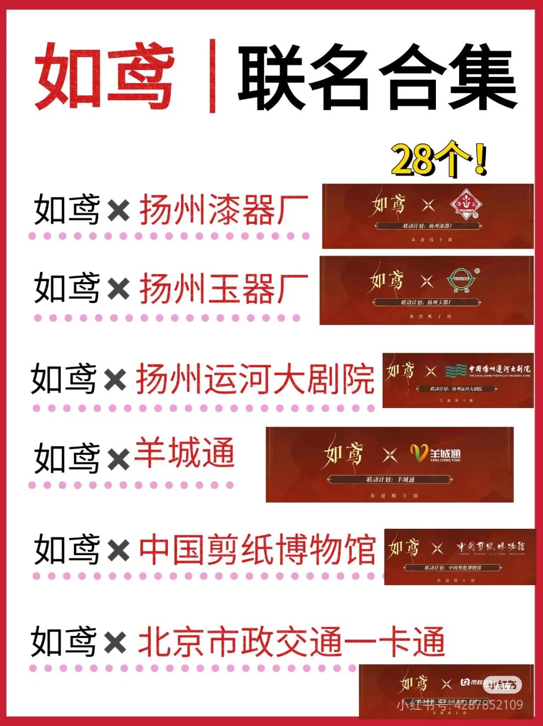 此外,随着竞品增多,国产女性向游戏在买量市场上也愈加活跃内卷,通过联名、文化活动、周边等方面加码营销的频率愈加普遍。比如《恋与深空》目前便与诸多非遗项目达成合作,而《如鸢》开服当日便官宣包括扬州运河大剧院、中国剪纸博物馆、一卡通、岭南通等28个跨圈联名。