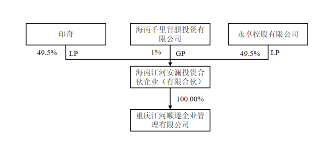 据公告显示,江河顺遂属于印奇麾下企业,由海南江河安澜投资合伙企业(有限合伙)(下称:江河安澜)100%持股,江河安澜的出资份额为4.04亿元,其中普通合伙人海南千里智骐投资有限公司(下称:千里智骐)认缴出资份额400万元,有限合伙人永卓控股有限公司、印奇分别认缴出资份额2亿元。