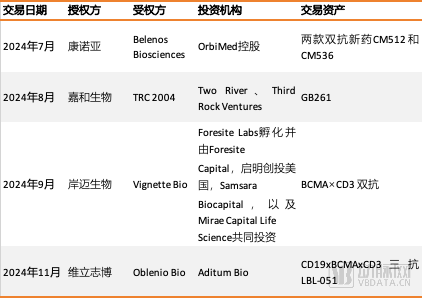 动脉网持续跟踪NewCo交易发现,海外顶级投资机构对于国内的创新药资产,有着明显的偏好。其中,T细胞衔接器类药物可谓是最能满足他们想象的管线类型之一。2024年以来,国内Biotech已经公布的NewCo交易共4项,所涉及的交易标的,均为在研的T细胞衔接器类药物。可以说,NewCo交易带火了T细胞衔接器类药物这个细分赛道。