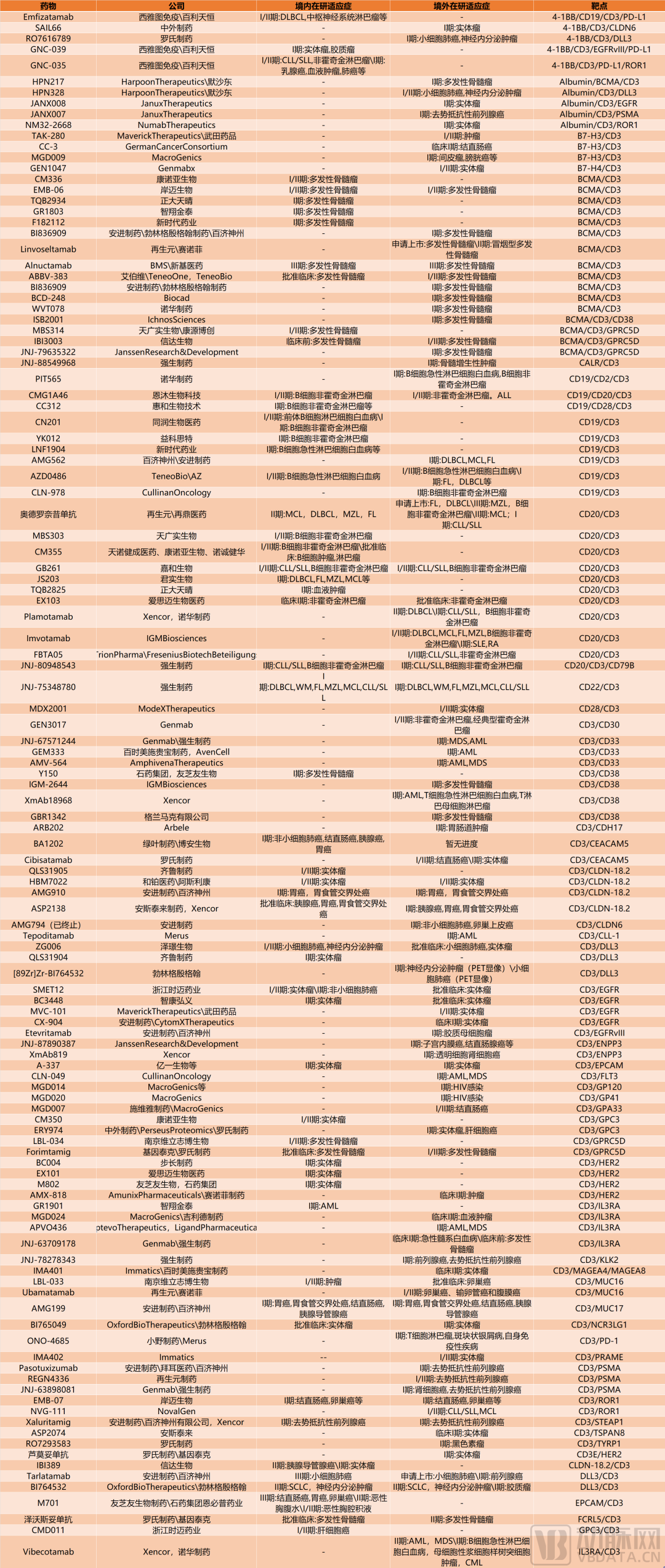 如今,随着安进的新药Tarlatamab(CD3/DLL3)获批在美国上市销售,加上T细胞抗原CD3结合CLDN18.2、EGFR、HER2等肿瘤特异性高表达靶点药物在临床早期展现良好效果,T细胞衔接器类药物也开始拿实体瘤适应症。而从血液瘤向实体瘤的突破,让更多MNC看到了T细胞衔接其类药物的临床意义和商业价值。