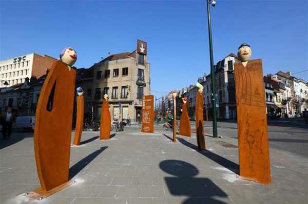 (1)3月23日报道,为纪念《罗马条约》签署60周年而设计的这组雕塑15日在布鲁塞尔的欧盟总部旁亮相。1957年3月25日,当时的联邦德国和法国、意大利、荷兰、比利时、卢森堡六国政府签署《罗马条约》,成立欧洲经济共同体和欧洲原子能共同体。