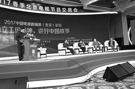 (1)3月24日报道,在2017春季北京电视节目交易会上,一场名为“确立工匠精神,讲好中国故事”的主题论坛邀请到了编剧刘和平、赵冬苓、兰晓龙,导演刘江以及评论人尹鸿共话如何在影视作品创作中保持工匠精神。