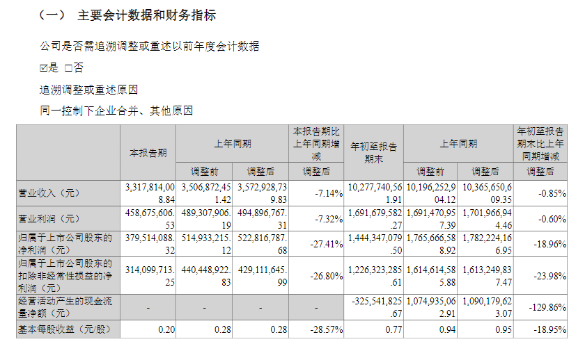 芒果超媒第三季度主要会计数据和财务指标,图源Choice