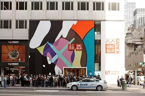 这种跨界带来最为直接的效果,便是销量上的引爆与品牌关注度 。去年KAWS与优衣库合作之后,迅速为后者带来了潮牌才有的话题效应,发售当日在全球主要门店看到排队的年轻人——当然还有中国黄牛。今年优衣库延续了与KAWS的合作,并赞助了KAWS在上海余德耀美术馆的展览。