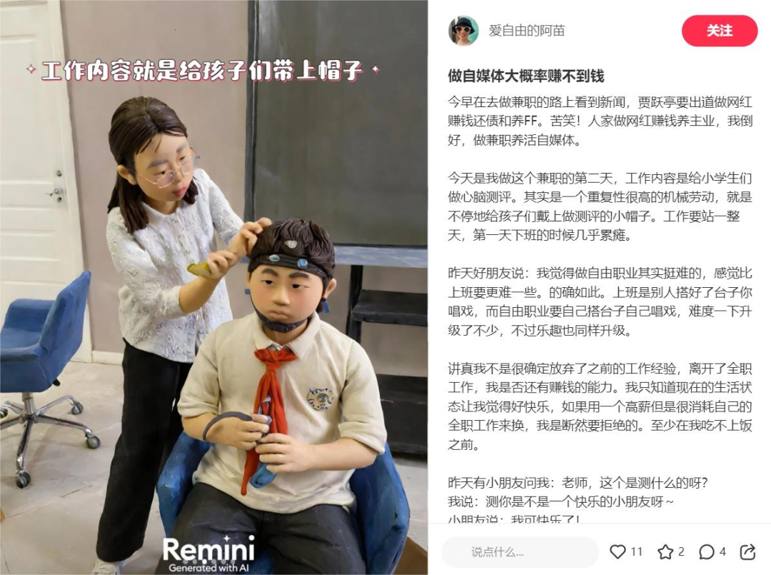 她想好好搞自媒体,但困在不知道如何让定位更加清晰,既让大众感兴趣,又能实现商业化。她也在考虑图文之外的其他形式,比如真人出镜的短视频。但至少到现在,她还只是把自媒体作为兴趣来对待,或许在做的过程中,一些新的机会就会出现。