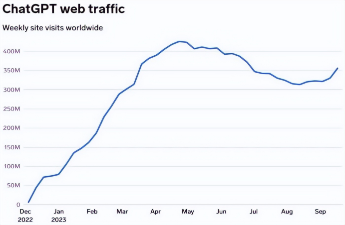 据SimilarWeb数据显示,ChatGPT网站流量在2023年12月同比下降了12%。