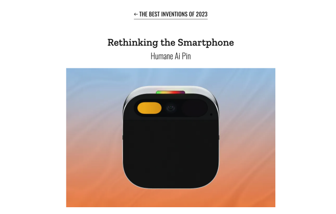 Humane的AI Pin承诺将AI助手变成随身设备: