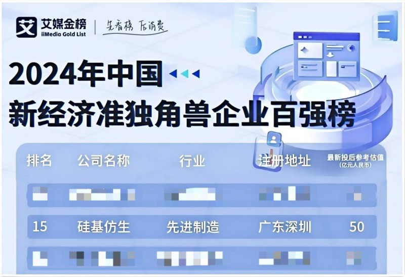 近日,全球新经济产业知名的第三方数据挖掘与分析机构iiMedia Research正式揭晓了“2024年中国新经济准独角兽企业百强榜”。硅基仿生凭借其卓越的数智化生产制造实力、非凡的创新能力和稳健的发展态势荣耀登榜,成为备受关注的“中国新经济准独角兽企业”。这一殊荣不仅是对硅基仿生在医疗健康与智能制造领域内杰出成就的认可,更是对其在新经济大潮中勇立潮头、引领创新变革角色的高度肯定。