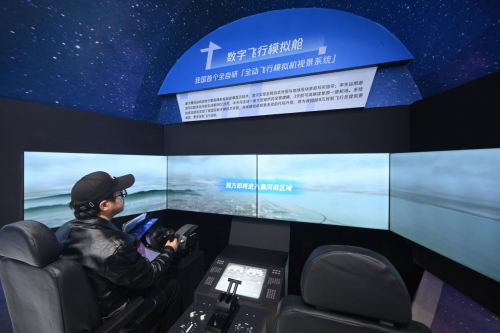 “只需要推动操纵杆,就能操作系统,体验民航飞行员第一视角下、拟真的训练场景……”在展区前方,由南航自研虚像显示技术和腾讯自研游戏引擎技术共同打造的全动飞行模拟机视景系统,吸引众多参观者体验。基于腾讯自研游戏引擎,系统首次实现全局动态光照与地球级场景超写实渲染,多边形生成面数较之前提升380倍、贴图精细度提升100倍,助力实现我国民航关键技术突破。